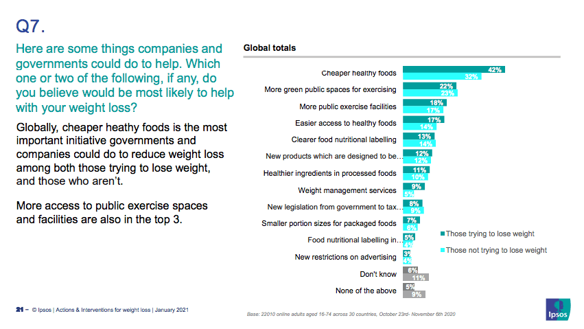 *42 por ciento de todos los países coincidió en que la comida saludable debería ser más barata.